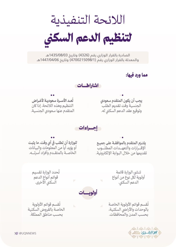 التعديل يُتيح تنويع الخيارات أمام المتقدم (وحدات جاهزة، أرض، تمويل، إلخ)، ويحدد آلية الاختيار والترتيب حسب حاجة الأسرة وقدرتها المالية.