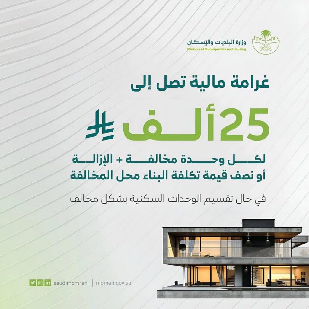 غرامات تصل إلى 25 ألف ريال على تقسيم المباني إلى وحدات بدون ترخيص