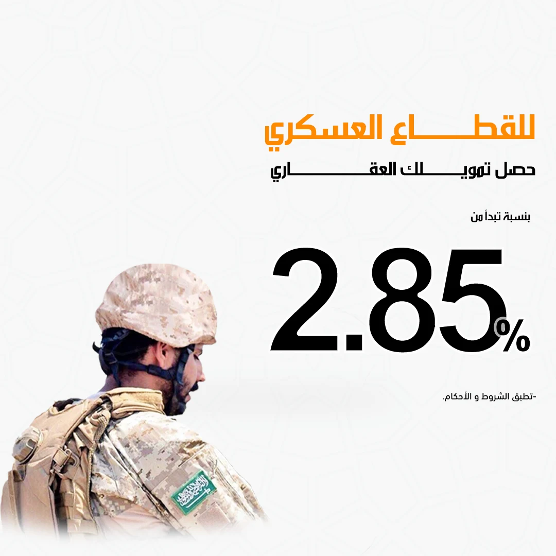 تمويل عقاري للقطاع العسكري هو خدمة تقدمها البنوك للأفراد العاملين في القطاع العسكري، سواء كانوا في الجيش أو القوات الأمنية أو أي جهة أمنية أخرى. يهدف هذا النوع من التمويل إلى توفير فرصة تملك العقار السكني للعاملين في القطاع العسكري.