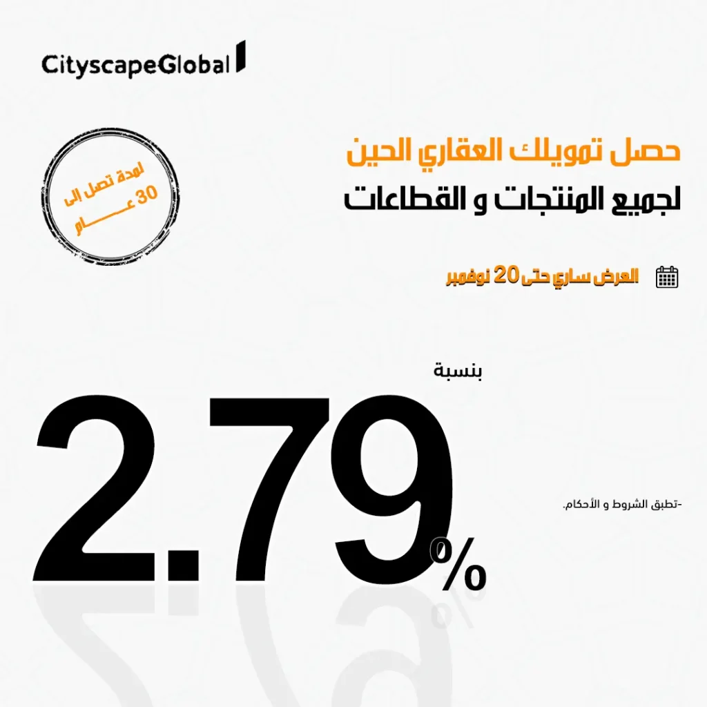 تمويل عقاري بنسبة 2.79% لمدة 30 عام